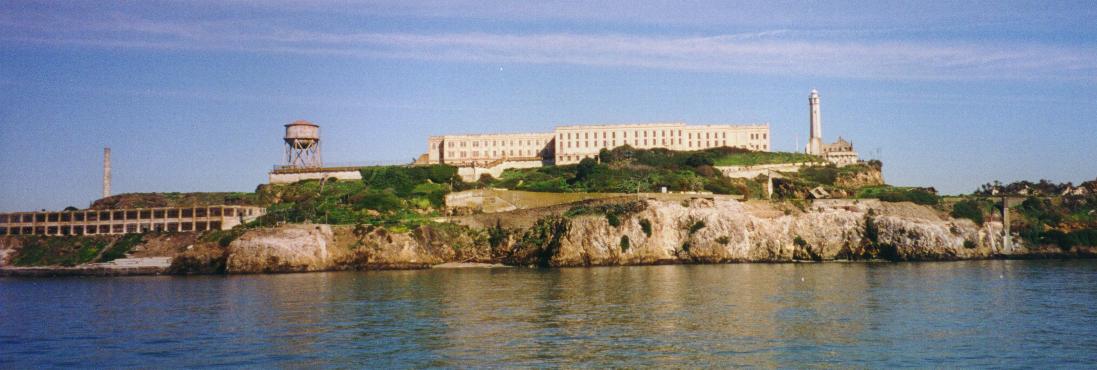 This is a view of Alcatraz as taken from the Sausalito to San Francisco Ferr. |