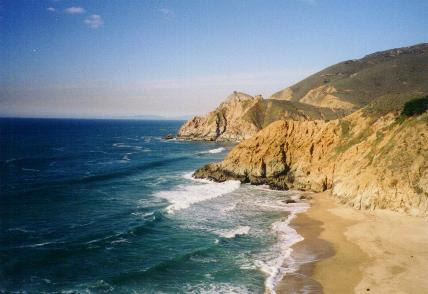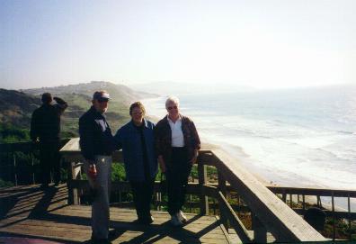 We spent the last afternoon and evening with Peggy's brother, Bill, and his wife, Jeanine. On the left are Bill, Peggy and Jeanine just off of the Pacific Coast Highway 1 overlooking the ocean. On the right is a view facing up north towards San Francisco. |