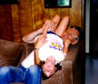 No matter where Grandpa sits, Kelly likes to climb all over him. |