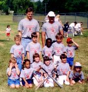 Kelly and her baseball team at the start of the Summer '98 season. Kelly is in the front row center. |