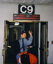 | Ryan getting on the plane for the first leg of his 100 day trip around the world, September 4, 1998. |