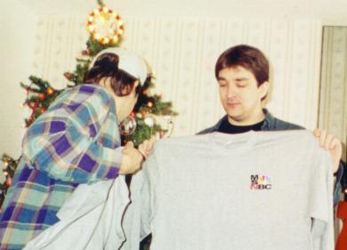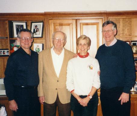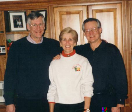 | Mom and her brother John showing Dan their support for "four" (It is an inside joke). |