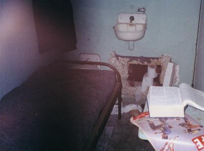 Peggy and Ry behind bars and the actual cell portrayed in the movie "Escape from Alcatraz" where an inmate dug out around the vent area of the cell to escape through an internal shaft. |