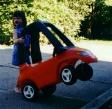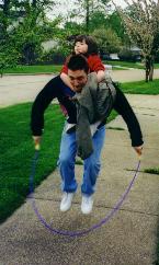 In May of 1998, Bob Jr. was showing his skill of jumping rope with his daughter on his back |