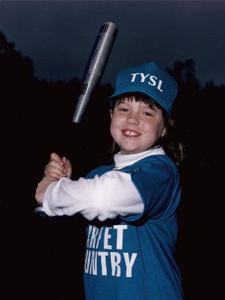 Kelly in her uniform for her baseball team, the summer of 2000 |