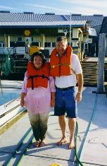 On a December 1998 vacation to Marco Island, FL, Bob and Peggy rented a boat. Bob went left instead of right, got off the main channel and ended up in shallow water. With the tide going out, we were rescued within minutes before they would have had to call in a helicopter. This was how looked after wading through 20 feet of knee-deep mud to the rescue boat. |