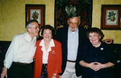 | Peggy's youngest brother, John; Peggy; her oldest brother, Bill; and her sister, Mary, at Aunt Wootie's birthday in 1996. |