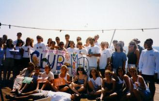 After leaving India, we had 10 or 12 days until our next stop in Israel. The long stretch was broken up by a day of wacky "Un-Olympics" which included some competitive sports (basketball, soccer) as well as some more goofy activities (name that soup, surprise pie). The olympics were kicked off by a lip synch contest the night before. Here's a pic of the winning team--the faculty/staff (and yes, that's yours truly center stage). |
