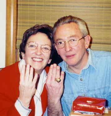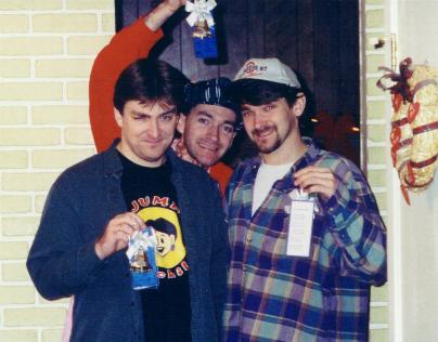 | Mom and her brother John showing Dan their support for "four" (It is an inside joke). |